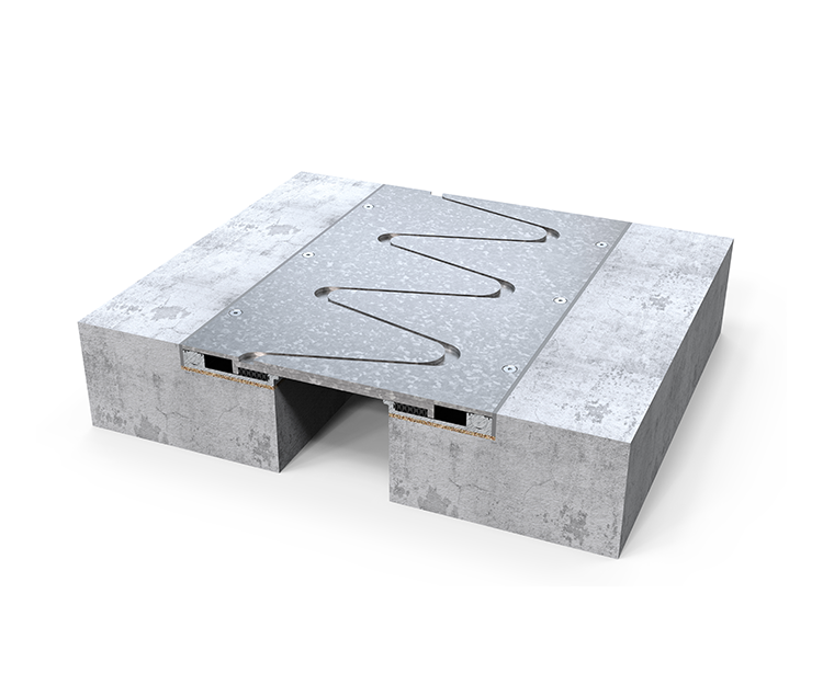 Yoğun forklift trafiğine dayanıklı olduğu için genellikle endüstriyel yapılarda tercih edilen alüminyum alt taşıyıcılı, galvaniz çelik üst yüzeyli kaplama altı zemin dilatasyon profili.