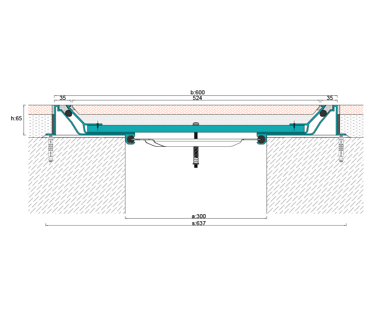 30 cm açıklık için yüksek hareket kapasitesine sahip mastik uygulamalı sismik zemin dilatasyon profili.