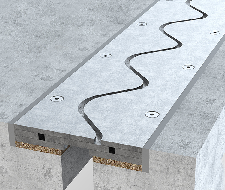 Yoğun forklift trafiğine dayanıklı olduğu için genellikle endüstriyel yapılarda tercih edilen çelik alt taşıyıcılı, galvaniz çelik üst yüzeyli kaplama altı zemin dilatasyon profili.