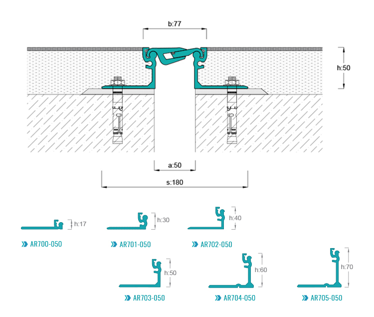 Flush Mounted Expansion Joint Profile suitable for Industrial Structures because of the resistance to forklift load, and also it has flat top surface and this flat surface makes it compatible to hygenic areas such as hospitals and shoping malls. It`s EPDM gasket allows sound-proof.