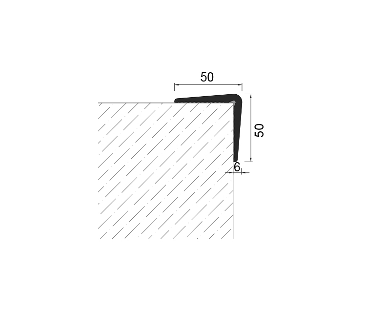 RG50 – (50mm x 50mm) is used for protecting columns and wall corners. TPE based corner protection is glued to the area with an appropriate adhesive. Production lengths are 1000mm, 1200 mm or 3000 mm.