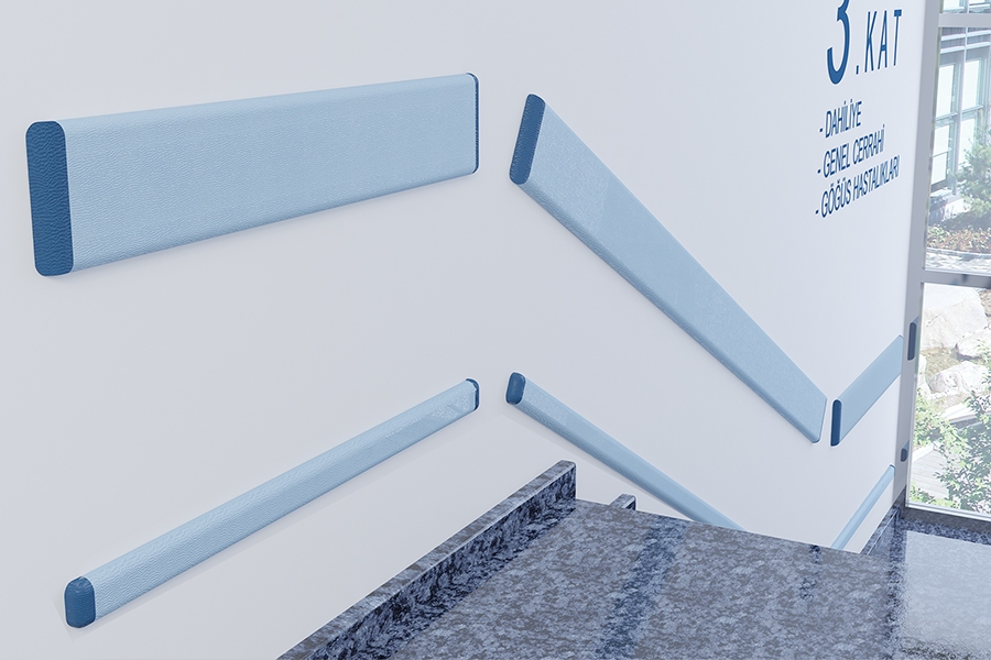 ile duvara montajı yapılan, duvar koruma bandıdır. Alt kauçuk fitiller