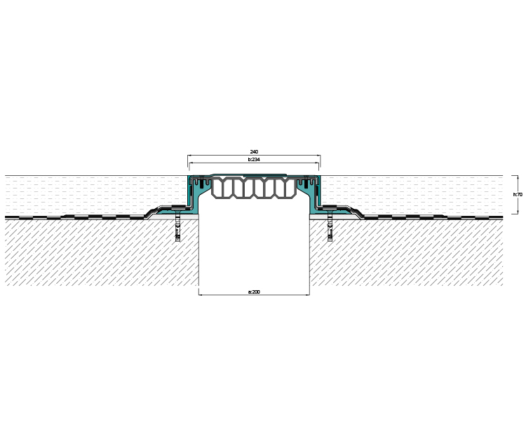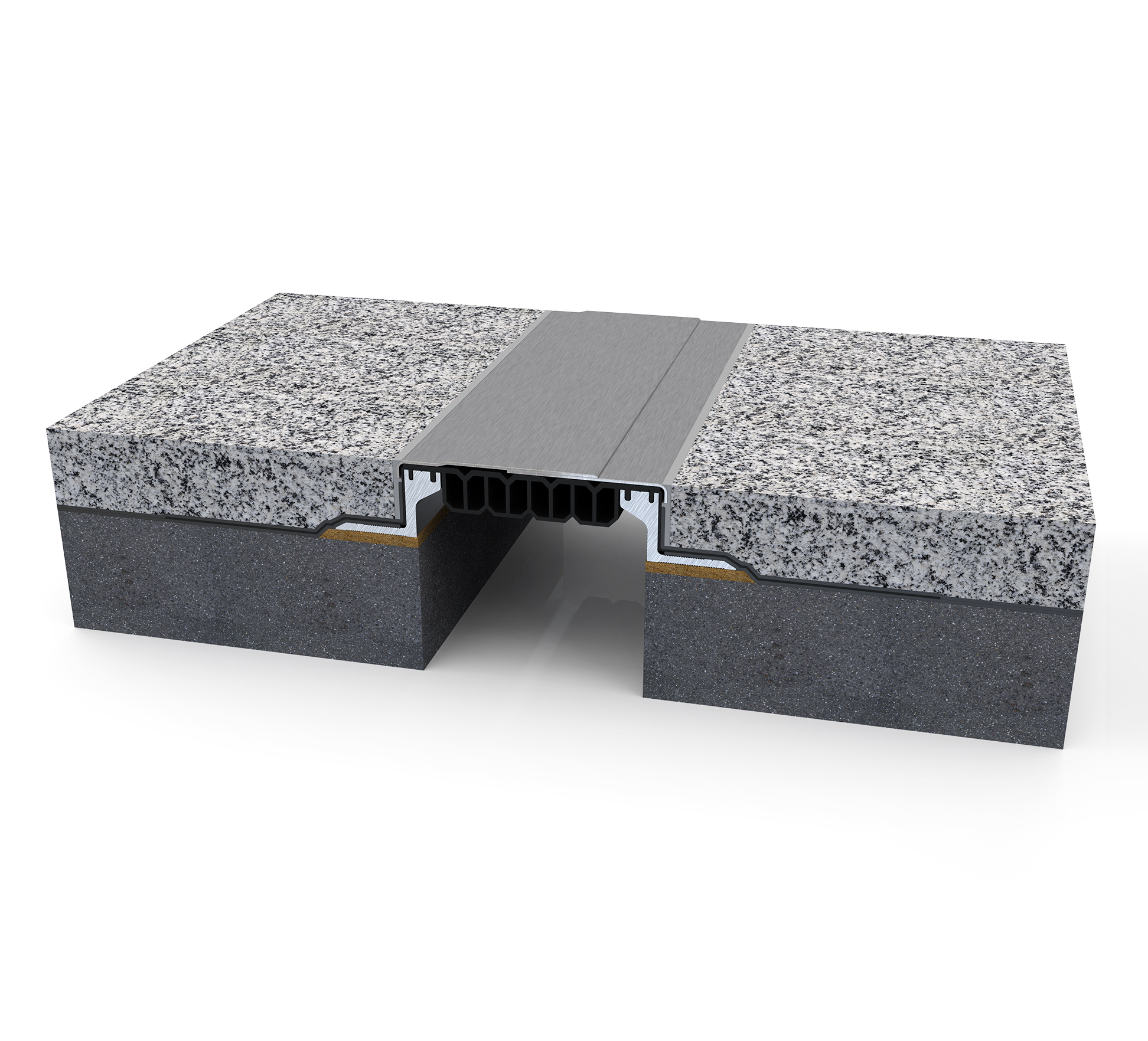 Full top stainless steel Expansion Joint profile Compatible with rubber based bituminous membrane which provides waterproofing and suitable for Waterproofing required areas such as terrace, parking lots. When thermal insulation applied on the water insultaion, profile system should be raised by heel concrete. It is recommended to use geotextile on the membrane for protection.