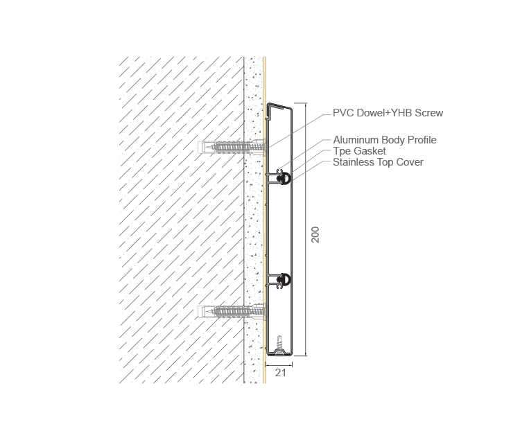 304 quality Stainless Steel wall protection systems are produced in 200 mm width and 1 mm thickness. The stainless steel top cover is fitted on aluminium system to be mounted to wall. Impact absorber gaskets are used inside to avoid any damages.